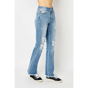 Judy Blue Full Size Distressed Raw Hem Bootcut Jeans