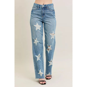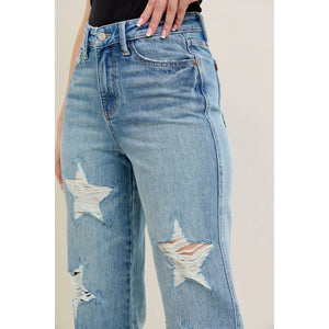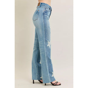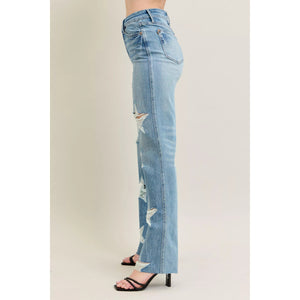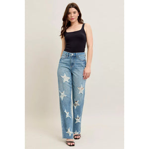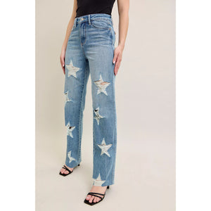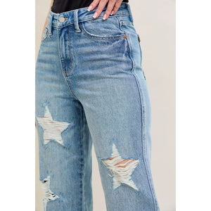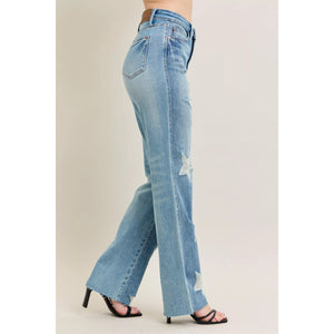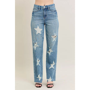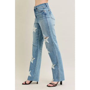 Judy Blue Full Size High Waist Rigid Magic Star Shaped Destroy 90's Straight Jeans Plus Size