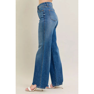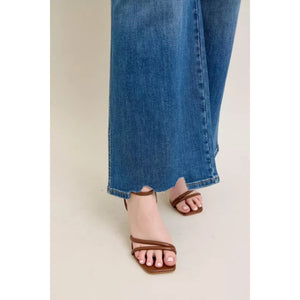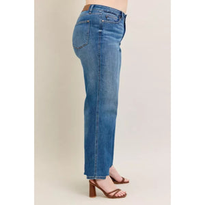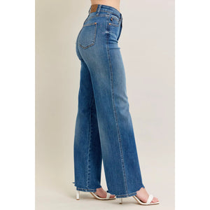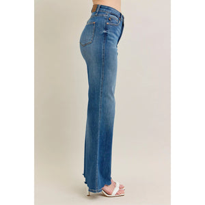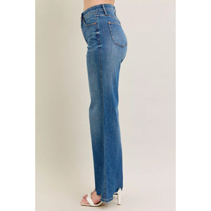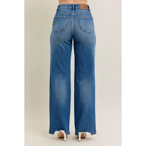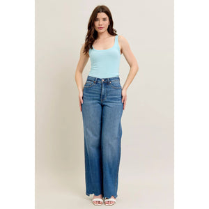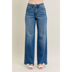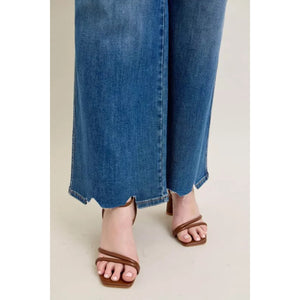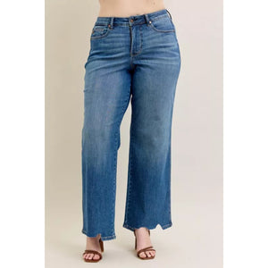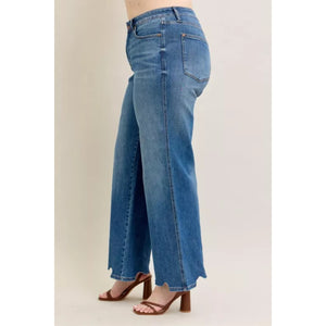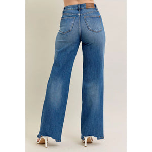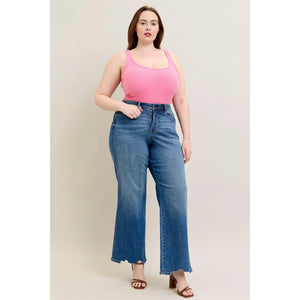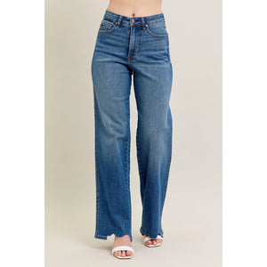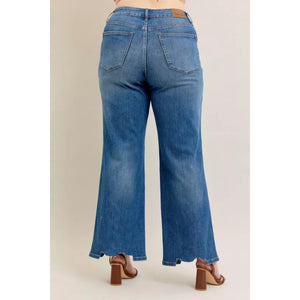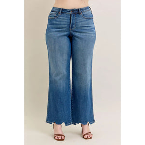 Judy Blue Full Size High Waist Tummy Control Chew Hem Destroy Wide Jeans Plus Size