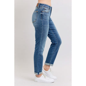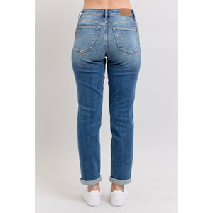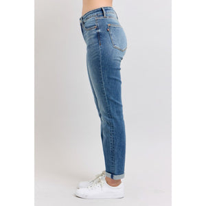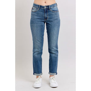 Judy Blue Full Size Mid Rise Skinny Cuff Jeans with Pockets Plus Size