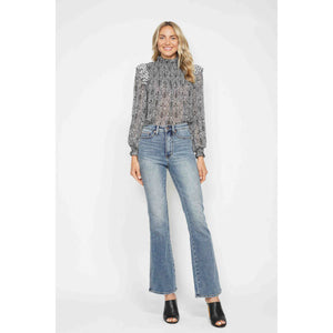 Tummy Control Back Embroidered Pocketed Bootcut Jeans are a stylish and figure-flattering option for your denim collection. The tummy control feature helps smooth and shape your midsection for a streamlined look. The embroidered pockets add a fun and trendy detail to the back of the jeans. The bootcut silhouette is classic and versatile, making these jeans a great option for a variety of occasions. Pair them with a blouse and heels for a dressier look, or with a casual tee and sneakers for a more relaxed outfit. These jeans offer both style and functionality, making them a must-have in your closet.