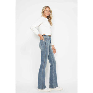 Judy Blue Full Size Tummy Control Back Embroidered Pocketed Bootcut Jeans Plus Size