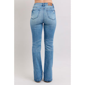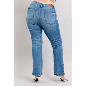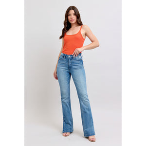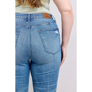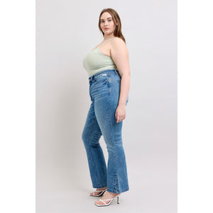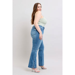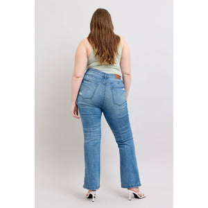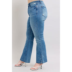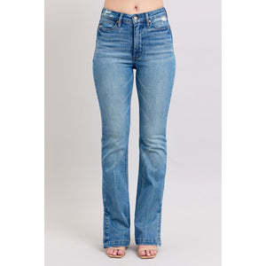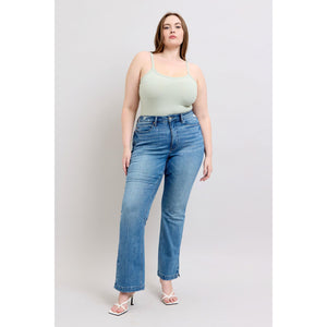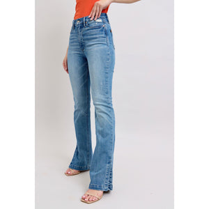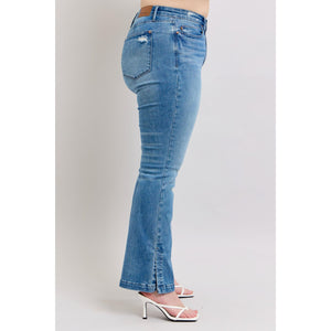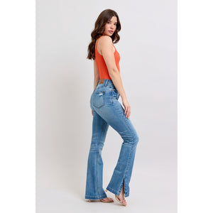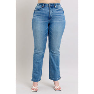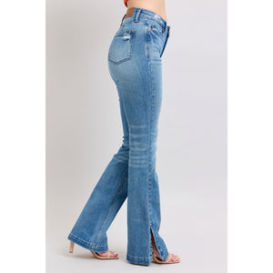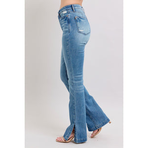 Judy Blue HW Tummy Control Vintage Wash Side Slit Slim Boot Jeans