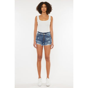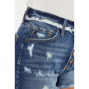 Distressed Button Fly Denim Shorts are a trendy and versatile addition to your summer wardrobe. The distressed detailing adds a touch of edgy appeal to the shorts, giving them a cool and casual vibe. The button fly closure offers a stylish and unique detail that sets these shorts apart. These shorts can be easily dressed up with a blouse and sandals or dressed down with a graphic tee and sneakers. Perfect for a day out with friends or a casual weekend getaway. Overall, Distressed Button Fly Denim Shorts are a must-have piece for those who love to add a touch of trendiness to their summer outfits.