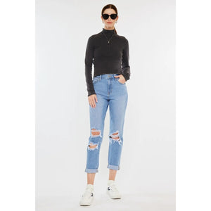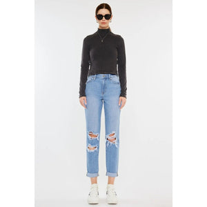 Kancan High Rise Distressed Mom Jeans