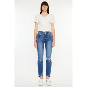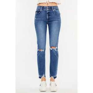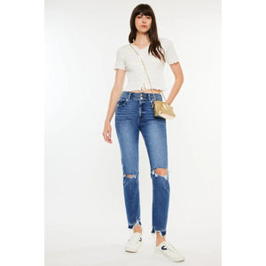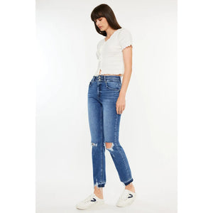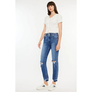Kancan High Rise Distressed Slim Straight Jeans