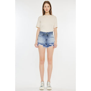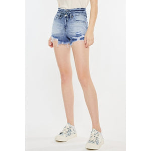 Kancan High Rise Frayed Hem Denim Shorts