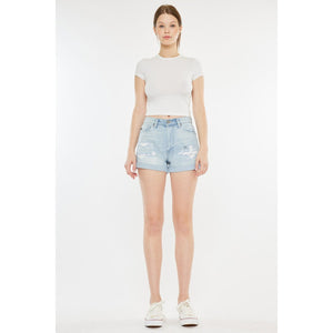 High Rise Repaired Mom Denim Shorts are a nostalgic and stylish option for a vintage-inspired look. The high rise design offers a classic and flattering fit, accentuating the waist. The repaired detailing adds a trendy and edgy element to the shorts, giving them a lived-in feel. These shorts are perfect for creating a relaxed and casual outfit for summer days. Pair them with a tucked-in tee and sneakers for a laid-back vibe. Overall, High Rise Repaired Mom Denim Shorts are a fashionable choice for those seeking a retro and cool aesthetic in their wardrobe.