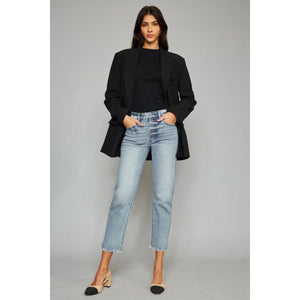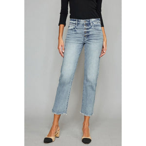 Kancan High Waist Button Fly Raw Hem Cropped Straight Jeans