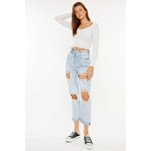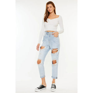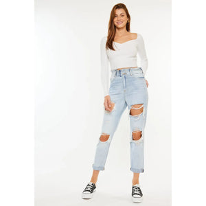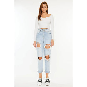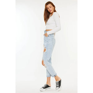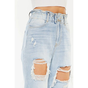 "Open Pack Paperbag Mom Jeans" is a unique and trendy style of jeans featuring an open pack design with a paperbag waist and a relaxed fit through the hips and thighs. The paperbag waist adds a chic and fashion-forward touch to the classic mom jeans silhouette. Perfect for creating a laid-back yet stylish look, these jeans offer a modern twist on a vintage-inspired design.