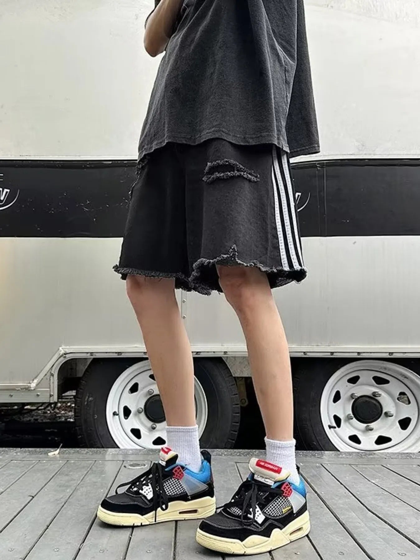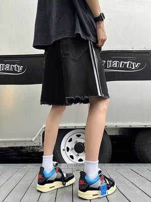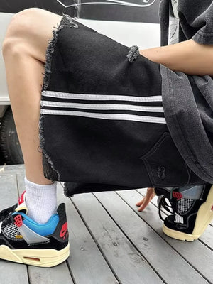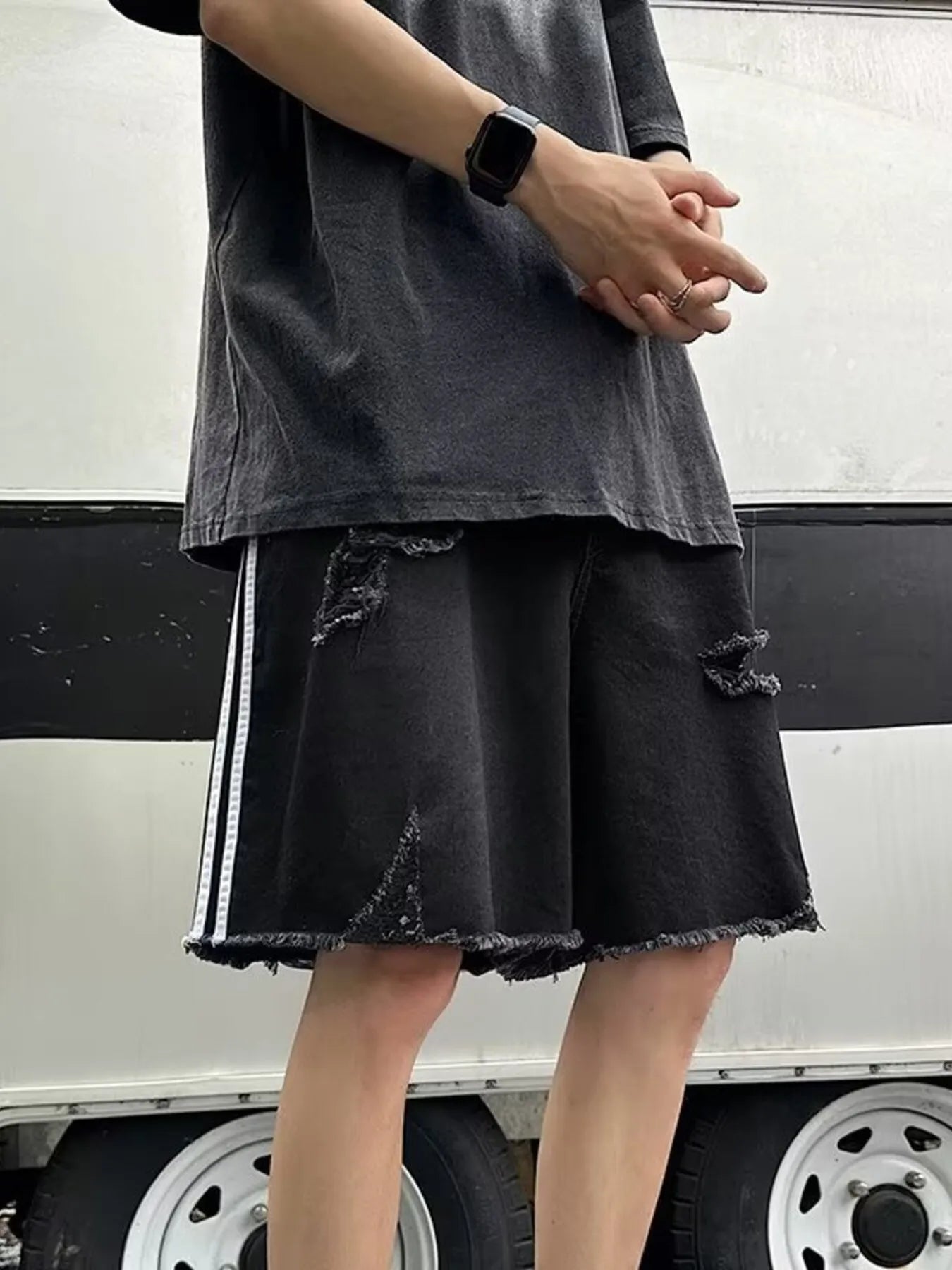 Men's Distressed Loose Fit Side Striped Denim Shorts