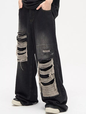 Men's Plus Size Distressed Wide Leg Jeans