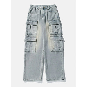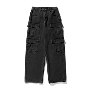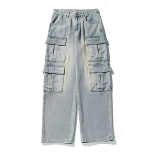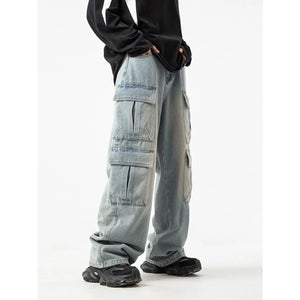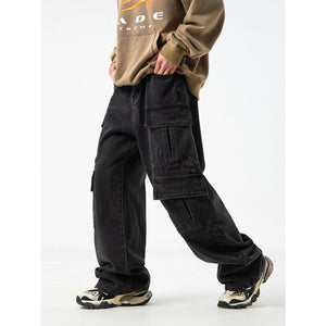 Men's Plus Size Wide Leg Jeans with Cargo Pockets