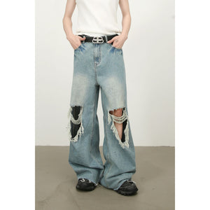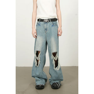 Men's Raw Hem Distressed Jeans