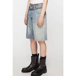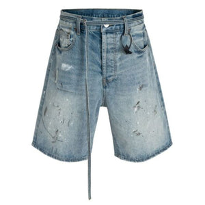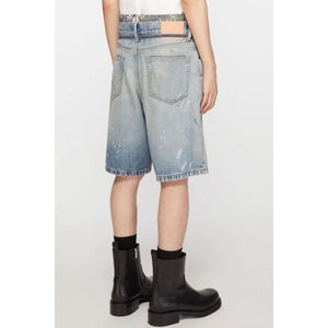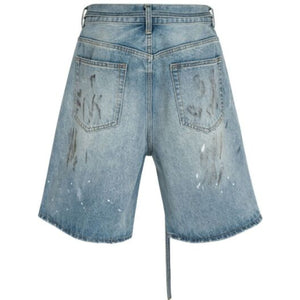 Men's Washed Graffiti Print Denim Bermuda Shorts