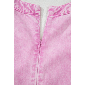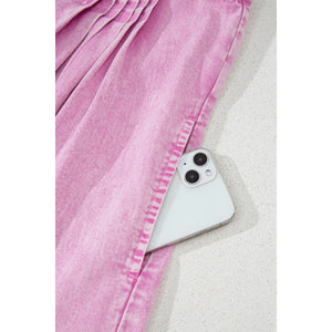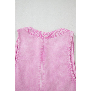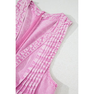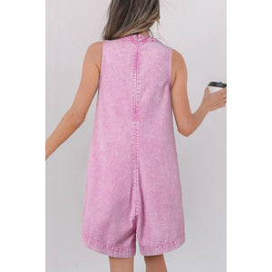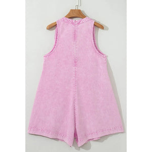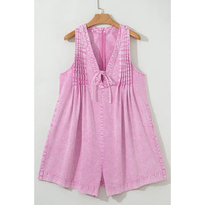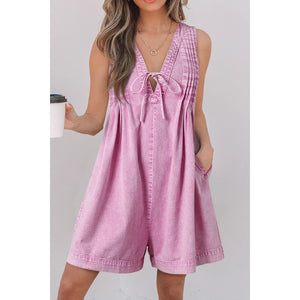 Mineral Wash Pleated Bust V Neck Sleeveless Denim Romper