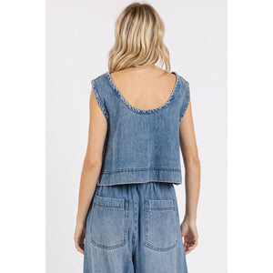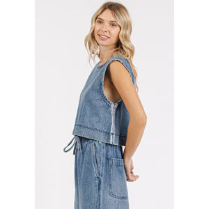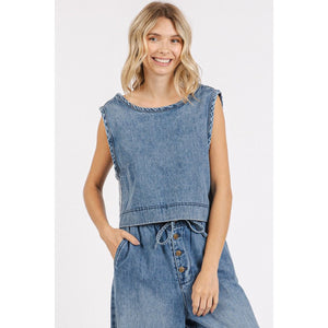 Mittoshop Washed Denim Distressed Detail Crop Tank