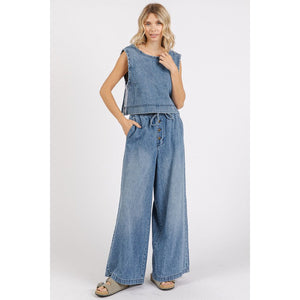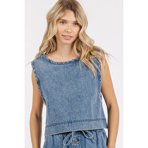 The Washed Denim Distressed Detail Crop Tank is a fashion-forward piece that exudes casual cool vibes. With its washed denim fabric and distressed detailing, this tank top offers a laid-back and edgy look perfect for everyday wear. The cropped silhouette adds a modern touch, making it a versatile piece that can be styled in various ways. Pair it with high-waisted jeans or shorts for a trendy and effortless ensemble. Embrace a rugged and relaxed aesthetic with the Washed Denim Distressed Detail Crop Tank as a key staple in your wardrobe.