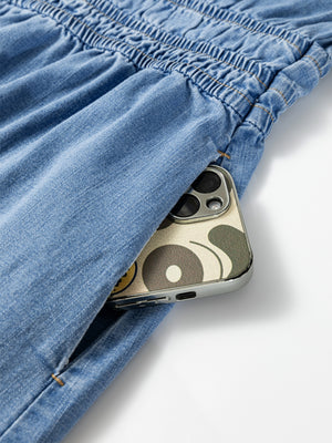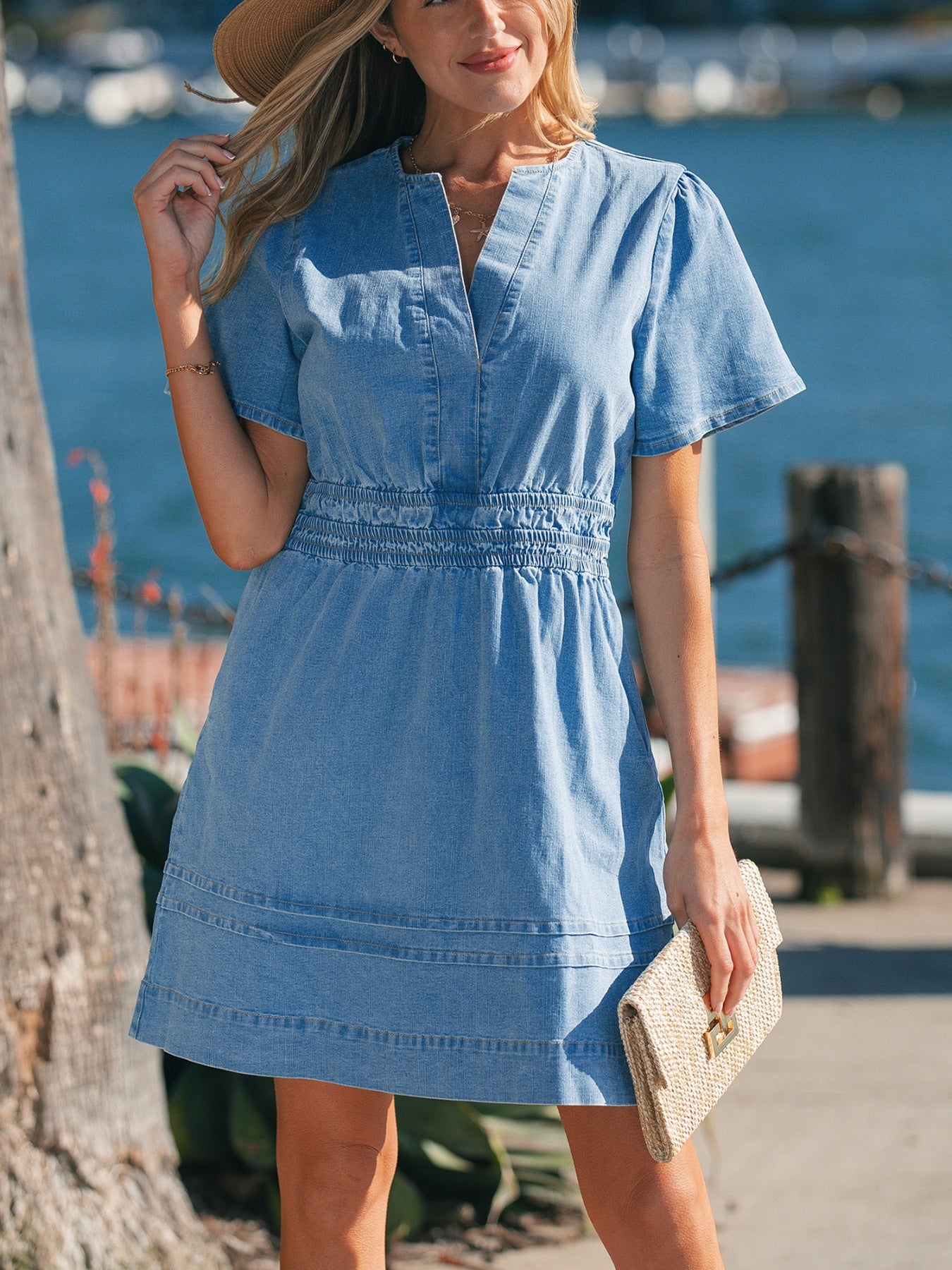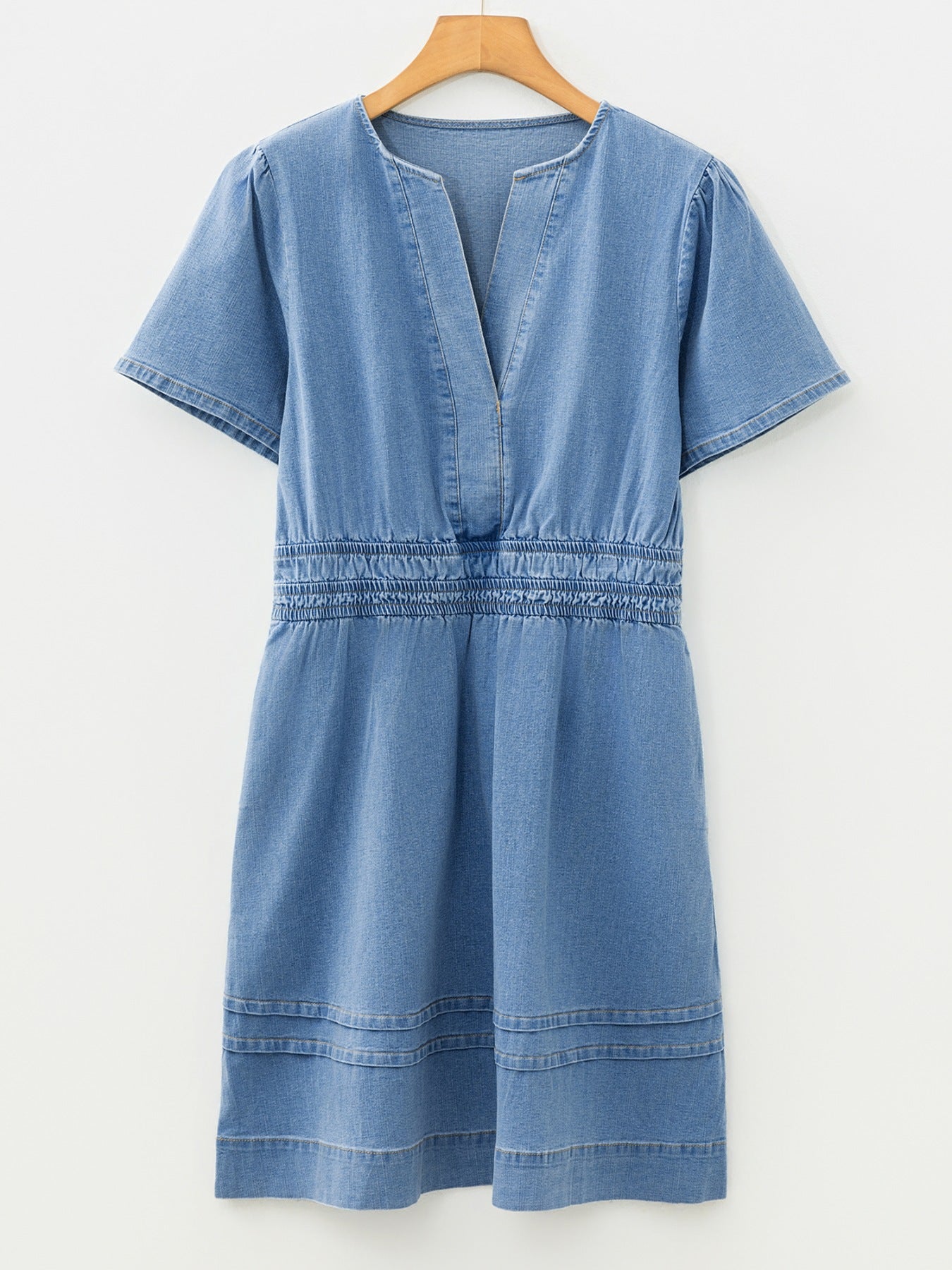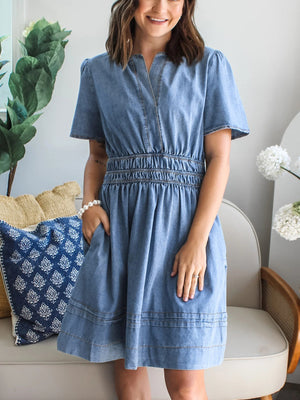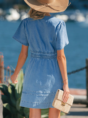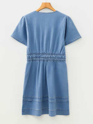 Notched Short Sleeve Denim Dress