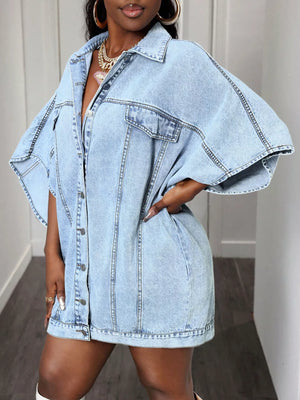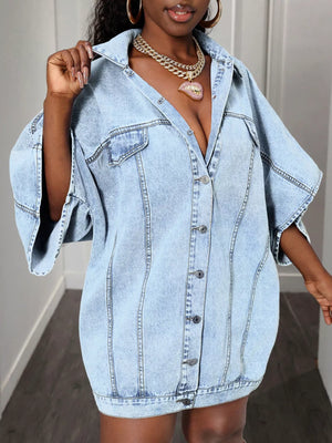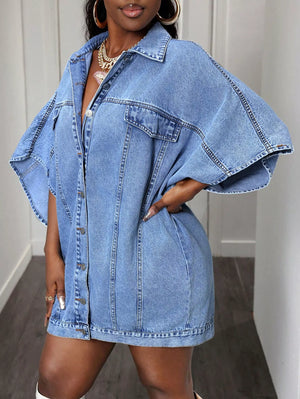 Oversized Batwing Sleeve Denim Top
