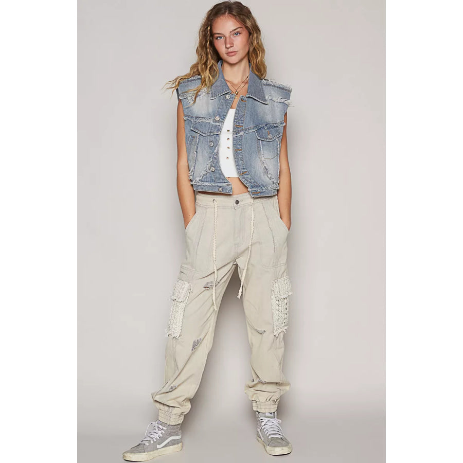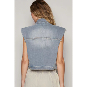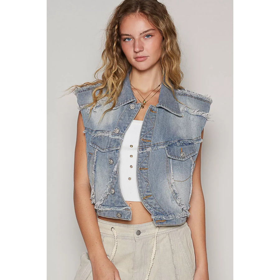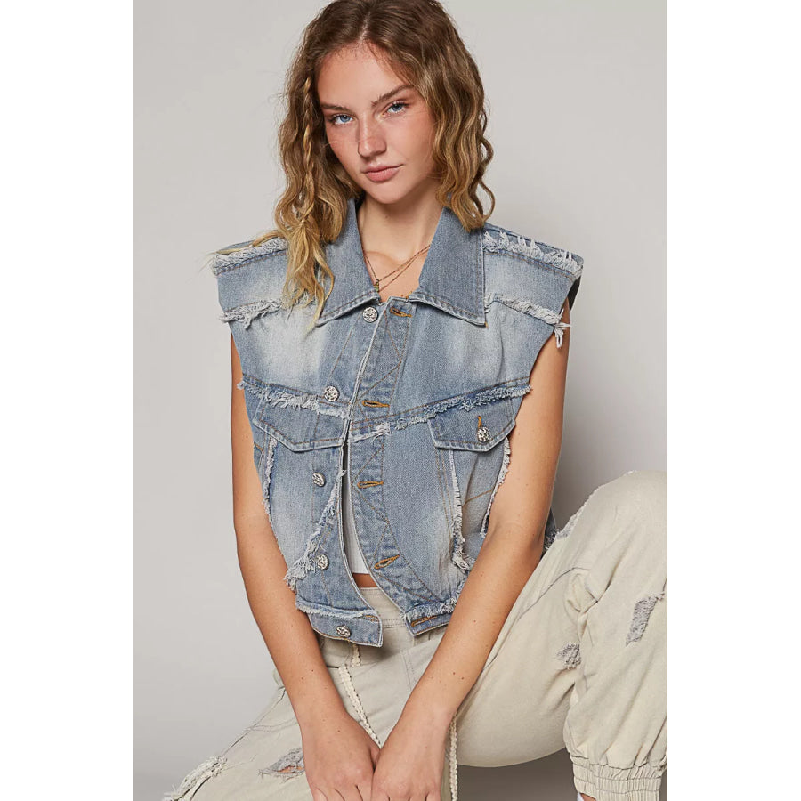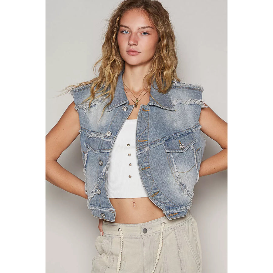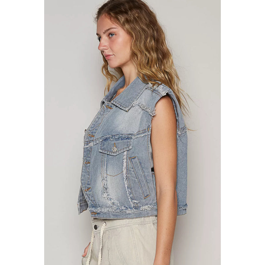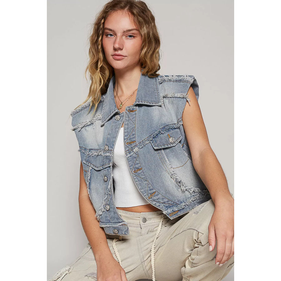 POL Assymetrical Front Closure Raw Hem Denim Vest