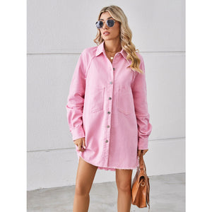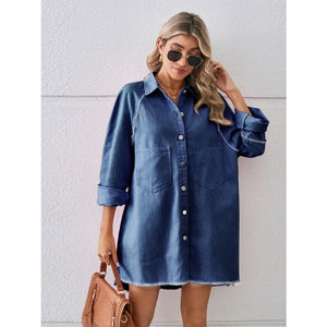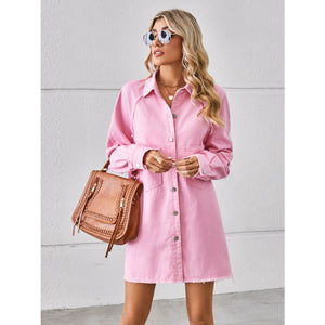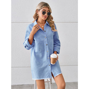 Raw Hem Button Up Denim Dress