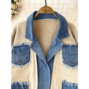 • Features:Contrast Stitching,Pocketed,Raw Hem