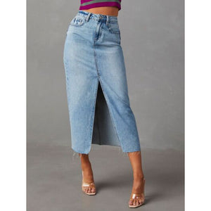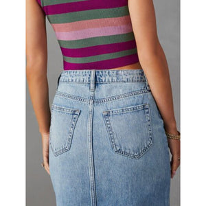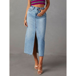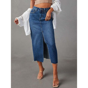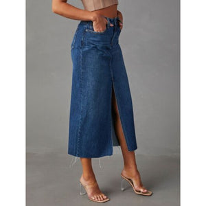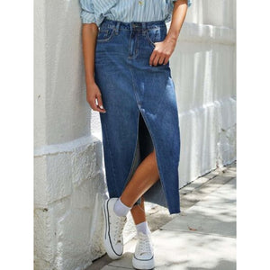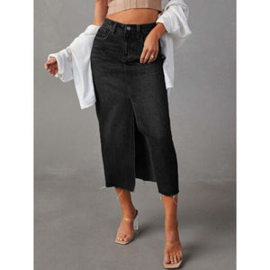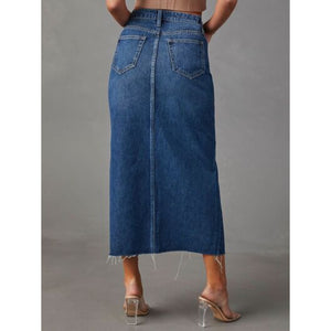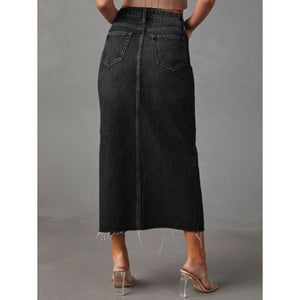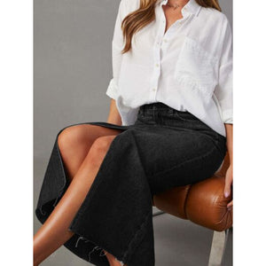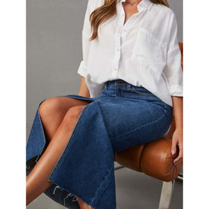 • Features: Buttoned, Pocketed, Slit, Raw Hem