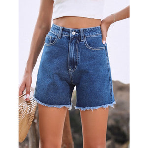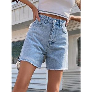 Raw Hem High Waist Denim Shorts