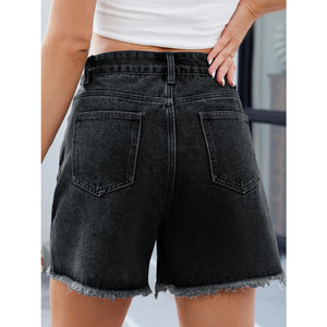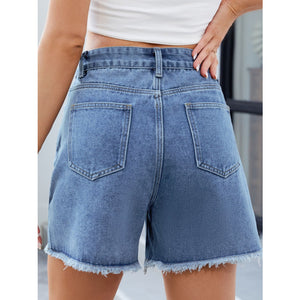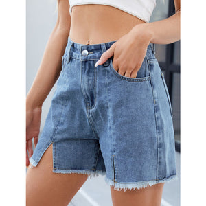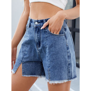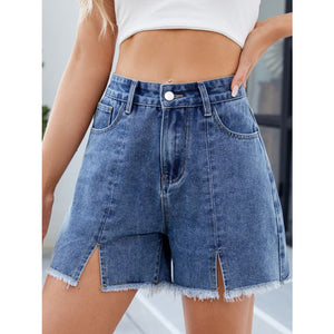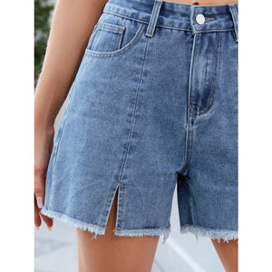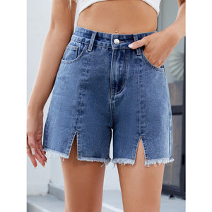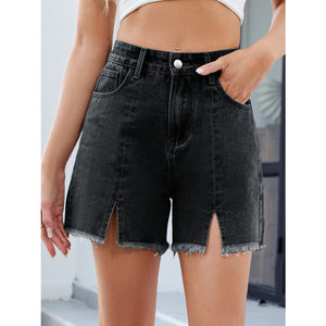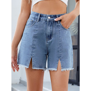 Raw Hem Slit Denim Shorts