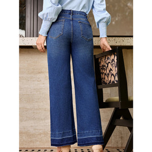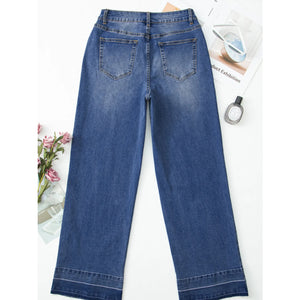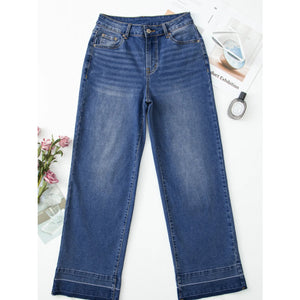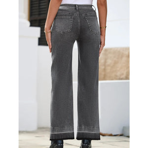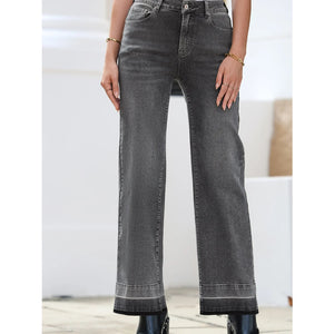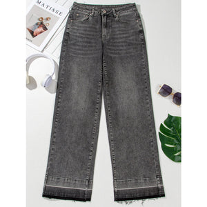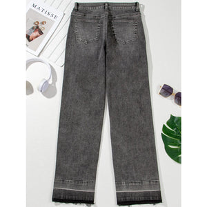 Raw Hem Unique Cuffs Straight High Rise Loose Jeans