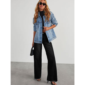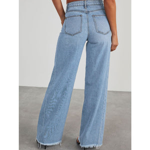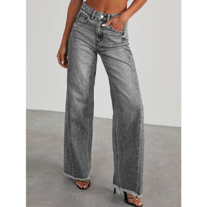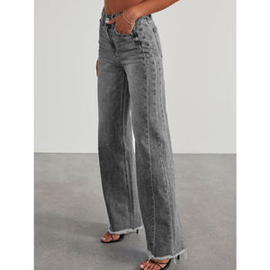 Raw Hem Wide Leg Jeans with Pockets