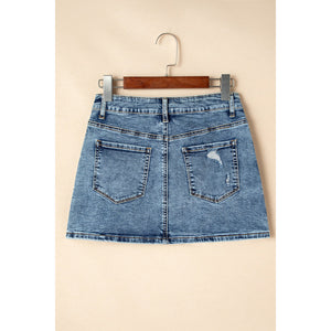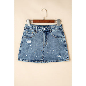 Rhinestone Distressed Denim Mini Skirt