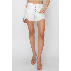 The Button Fly Frayed Hem Denim Shorts are a chic and on-trend choice for the summer. With a stylish button fly closure and frayed hem detailing, these shorts offer a fashionable and edgy look. Made from quality denim material, they provide both comfort and durability for all-day wear. Pair them with a cropped tee and sneakers for a casual vibe, or dress them up with a blouse and wedge sandals for a more elevated outfit. The frayed hem adds a touch of casual charm to these versatile shorts, making them a staple in your wardrobe. Elevate your summer style with these trendy and stylish button-fly frayed hem denim shorts.