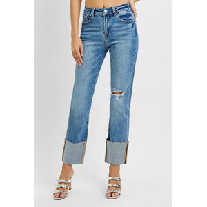 RISEN Full Size High Rise Ankle Straight Wide Cuffed Jeans Plus Size