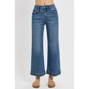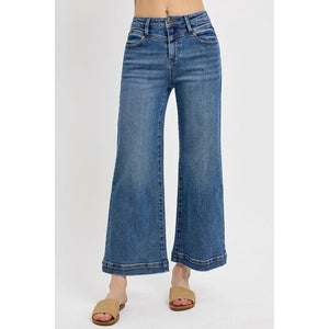 RISEN Full Size High Rise Crop Wide Leg Front Yoke Detail Jeans Plus Size