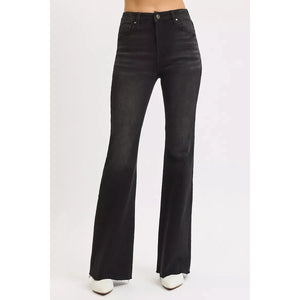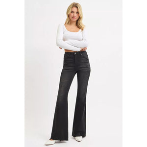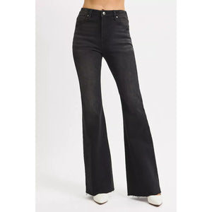 RISEN Full Size High Rise Flare Raw Cut Hem Jeans Plus Size