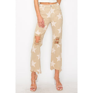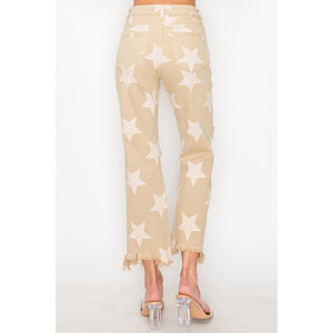 RISEN Full Size High Rise Star Printed Frayed Hem Jeans