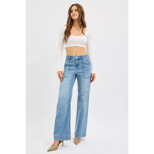 RISEN Full Size High Rise Straight Leg Jeans with Front Pockets Plus Size