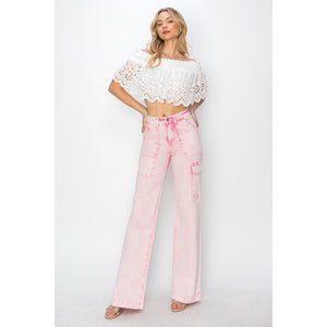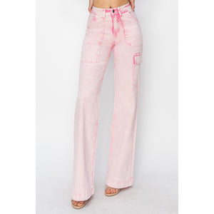 RISEN Full Size High Rise Wide Leg Cargo Pocket Jeans