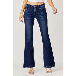 Low Rise Flare Jeans are a stylish throwback to classic denim trends. They feature a low-rise waistband, sitting below the natural waist, and flare out from the knee to the hem. This design creates a flattering silhouette and adds a touch of retro flair. Perfect for pairing with both casual and dressier tops, these jeans offer a versatile look with a touch of vintage charm.