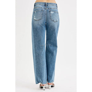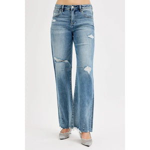 RISEN Full Size Mid Rise Fit Wide Baggy Leg Tie Washed Jeans Plus Size