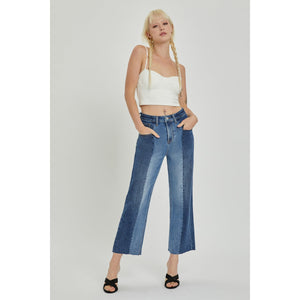 RISEN Full Size Mid-Rise Waist Two-Tones Jeans with Pockets