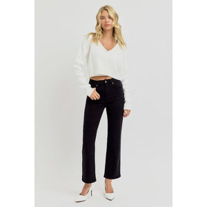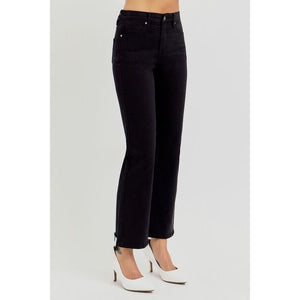RISEN Full Size Tummy Control Elastic Band High Rise Crop Straight Jeans Plus Size
