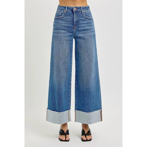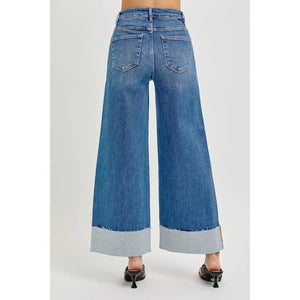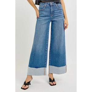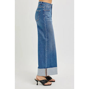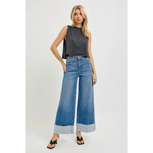 RISEN Full Size Tummy Control High Rise Crop Wide Cuffed Jeans Plus Size