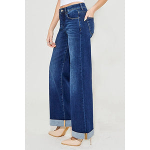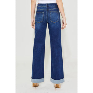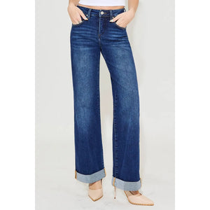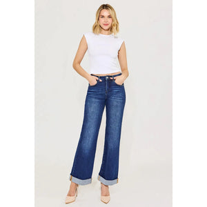 RISEN Full Size Tummy Control High Rise Wide Leg Cuffed Jeans Plus Size