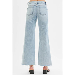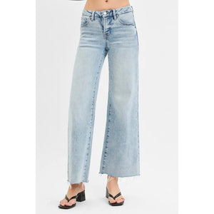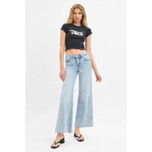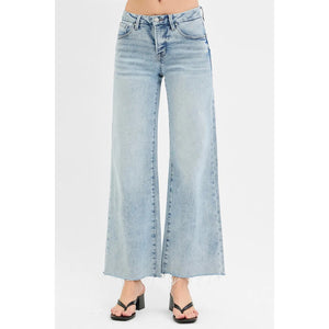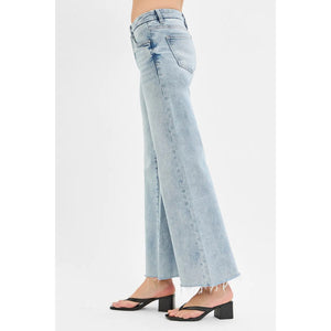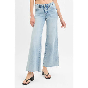 RISEN Full Size Tummy Control Low Rise Wide Leg Raw Cut Hem Jeans Plus Size