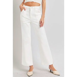 RISEN High Rise Ankle Flare Jeans with Patch Pockets