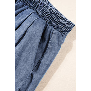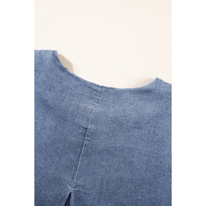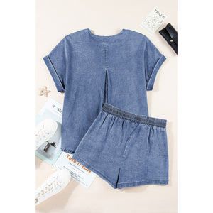 Round Neck Short Sleeve Top and Shorts Denim Set