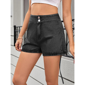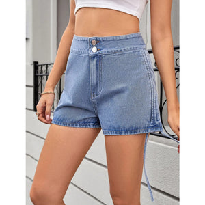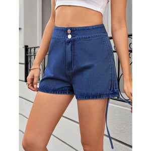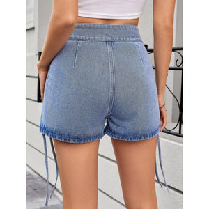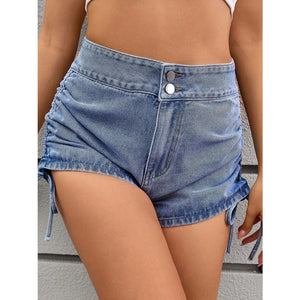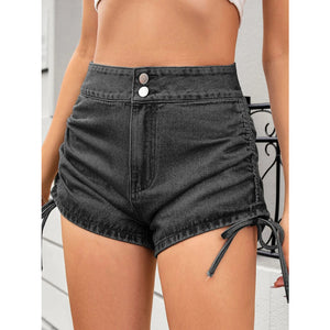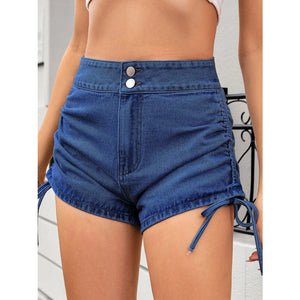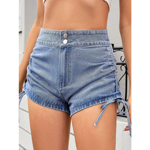 Ruched Side Drawstring Denim Shorts